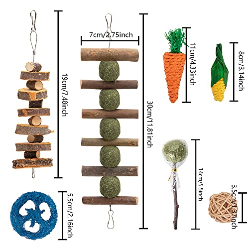 ?18 Pack Wooden Chew Toys?Our bunny chew toys set includes Apple wood molar string, grass ball molar string, rattan balls, loofah toys, loofah carrot, woven carrot, woven corn, and so on,enough quantity for your little pet to play and chew.
