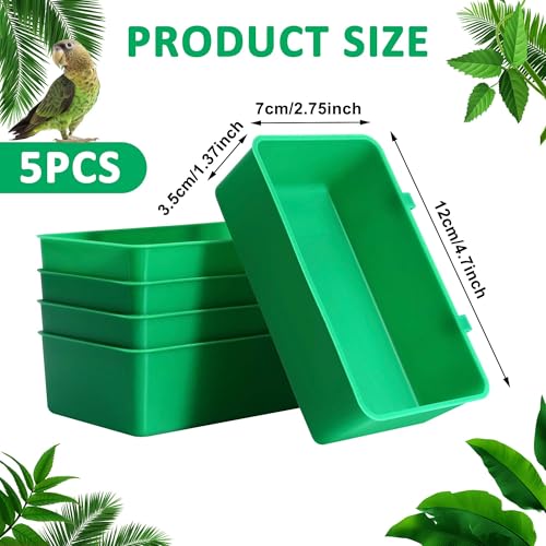 ? ?Package and size?Our package includes 5 PCS Birds Cage Cup. Size is12*7*3.8cm,and hooks length 1cm. You can easily remove it and wash it with water, and does not hold bad odors or germs like a other food bowl, keep pets safer to use.