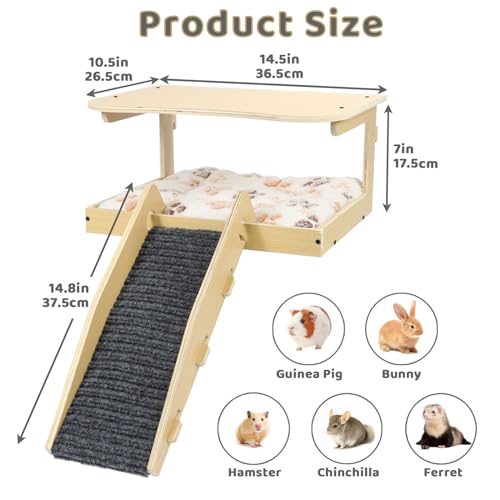 Small Animal Hiding Place: the size of the bed is 13*10.5*6.8 in, the size of the staircase is 14.5*10.5*15 in, can accommodate 2-4 guinea pigs, suitable for guinea pigs, hamsters, rabbits, ferrets, hedgehogs, gerbils, squirrels and other small animals