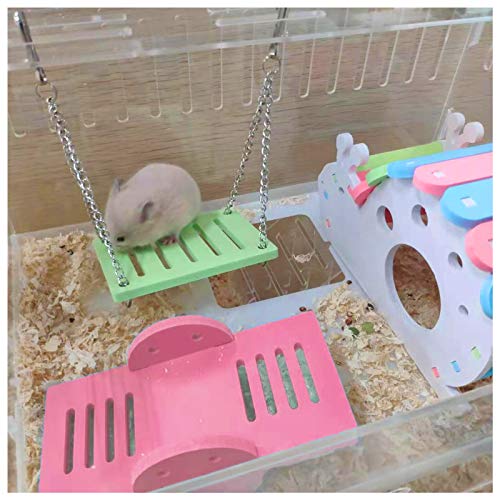 ?Colorful Toys for Hamsters?: The package includes one small rainbow house, one swing, one seesaw for your little pet. You could use them to create a sweet home for your hamster, they will love to play with these toys and feel quite happy in the cage.