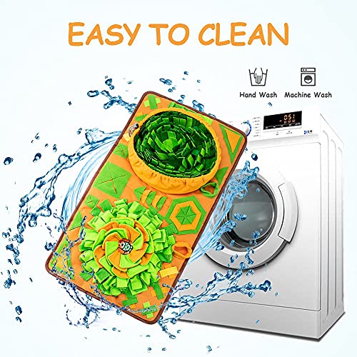 ?Easy To Store And Clean--What is the biggest headache every time your dog has finished playing with toys? Is the cleaning process. AWOOF Dog Sniffing mat fully takes this problem into consideration, and gives you the greatest convenience in the process of storage and cleaning. When you need to pack up, you only need to pull up the two sniffle mat handles on the left and right sides of the mat and fold it up. When you need to wash it, you can just put it in the washing machine.