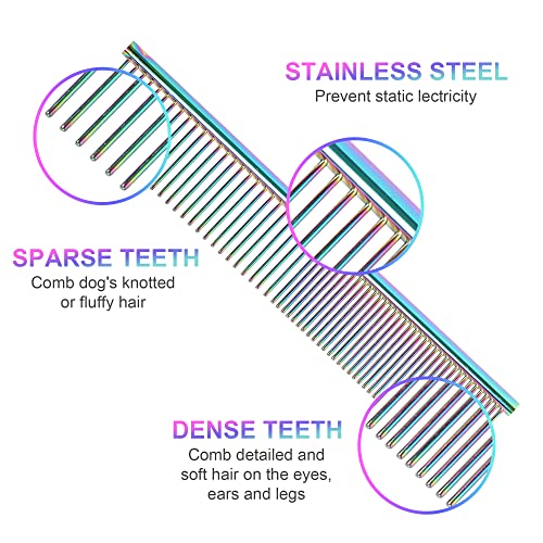 ???? ?Dual Densities Design? : Pet grooming comb is designed with two different densities of teeth. You can use the sparse teeth to comb your dog's knotted hair and fluffy hair, while the denser teeth are suitable for combing detailed and soft hair on the eyes, ears and legs.