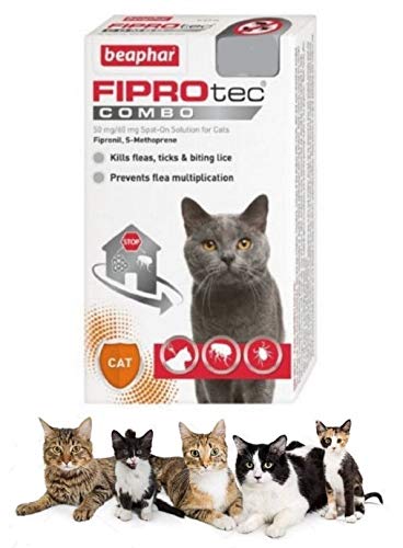 FIPROtec COMBO Spot On for Cats contains Fipronil and the insect growth regulator S-methoprene. It will not only kills adult fleas, ticks and biting lice, but also interrupts the flea life cycle, FIPROtec COMBO Spot On for Cats kills adult fleas for up to four weeks and ticks for up to two weeks. Suitable for cats over 8 weeks of age and weighing more than 1kg. Suitable for pregnant and lactating queens Please refer to Product Description for further information - Thank you - Step into Pets World