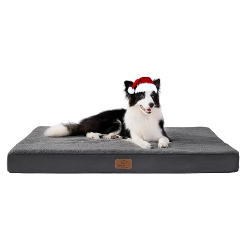 EGG CRATE FOAM: Bedsure dog bed crate evenly distributes pet’s weight to alleviate pressure on joints & bony areas - Resemble the bottom of an egg carton, this bumpy surface is softer than a solid block of foam and helps air circulate to keep puppies cool in the hotter months - Convoluted foam also offers shock absorption that is beneficial for older dogs.