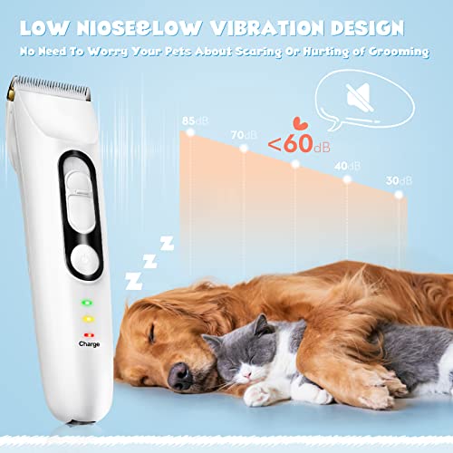 ?Quiet and Low Vibration? The pet grooming clipper equipped with powerful motors, blades with heavy gears, really powerful cutting,can work at 50-60 DB.Dog Clippers provides quick trimming without frightening or making your pet nervous.You don't need to go out to the pet shop to trim your pet's hair in winter.