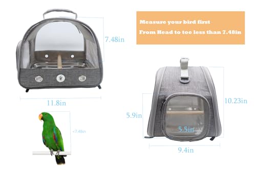 3.[Dimension]Length: 11.8 inches, width: 9.4 inches, height 10.2 inches. The height above the standing perch is 7.4 inch.Please Measure your bird from head to feet before purchase. fit for most small birds such as parrot cockatiel parakeets, guinea pig, bearded dragon etc small animals.