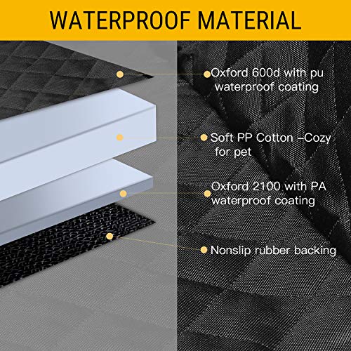 ?????Waterproof & Scratch Proof Material?Bonve Pet dog car seat cover is made of heavy duty material - 600D quilted oxford surface, PP cotton, PVC waterproof coating, Non-slip backing. Waterproof double layer design can protect the back seats from stains, scratches, spills, dirt, hair & fur, drool, urine/water damage. The side flaps design can offer 360 degree protection for the side doors to keep your car free scratches