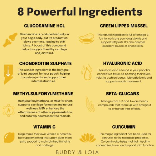 10 KEY DOG SUPPLEMENTS - Glucosamine, Chondroitin Sulphate, Green Lipped Mussel, Methylsulfonylmethane, Hyaluronic acid, Vitamins C & E, Curcumin, Manganese Sulphate and Beta 1,3/1,6 Glucans