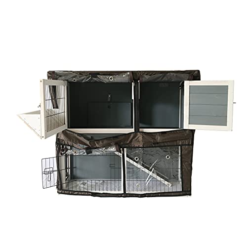 The rabbit hutch will be completely covered up by this insulating and water-repellent protective cover. that way rabbits are protected against rain, wind and low temperature, so that they feel themselves snug like being in a cave.