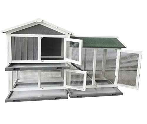 BUNNY BUSINESS The Grove Grey Double Decker Rabbit/Guinea Pig Hutch and Run EXTRA DEPTH WITH FLOOR (GREY GROVE, HUTCH AND COVER)