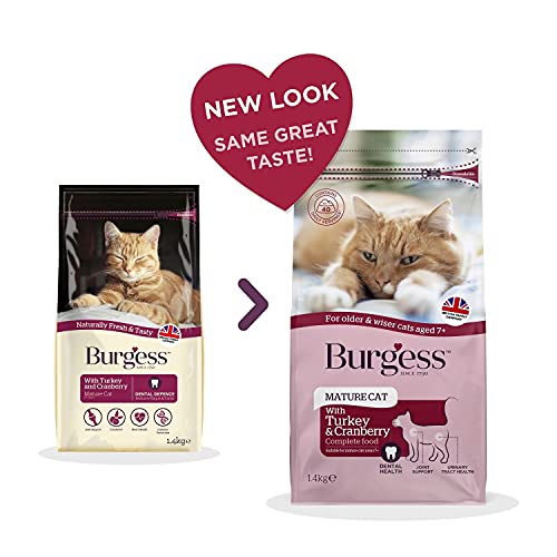 Burgess Dry Cat Food for Senior Cats with Turkey and Cranberry, 1.4 kg