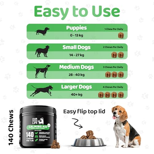 Our all-natural calming dog treats and chews are perfect for relieving stress and anxiety in dogs, with a soothing formula of Peanut butter flavour that includes valerian and other natural ingredients that come with Flip Top Lid which makes it easy to use