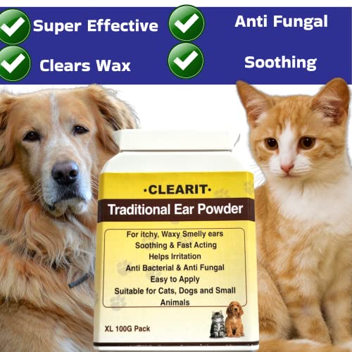 Clearit Ear Mite, Wax, Yeast & Canker Relief Powder 100g SUPERSIZE PACK HIGHLY EFFECTIVE & FAST ACTING TREATMENT PROMOTIONAL PRICE!!!