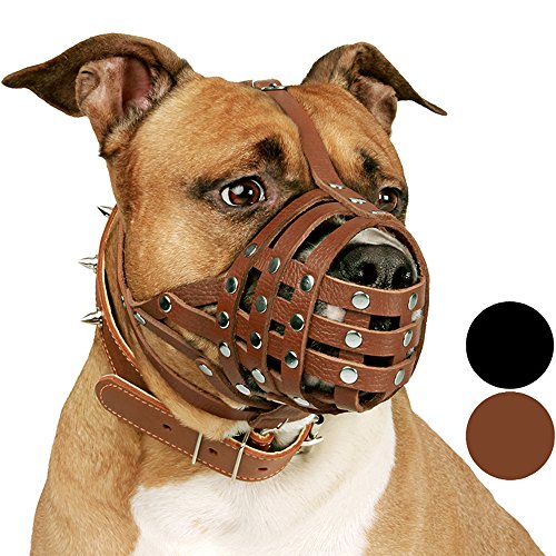 MULTIPURPOSE: This basket leather muzzle can keep your pet from eating unwanted food/treats from strangers or while on walks. This secure muzzle for large and medium dogs keeps them from barking or biting, providing protection to your pet and others.