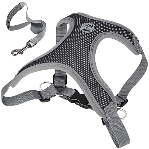 Dog Harness No Pull: The dog harnesses can reduce pulling behaviours. Dog vest harness distributes the pressure evenly over your dog's chest and shoulders, avoiding suffocation or neck strain. The 1.2m dog lead , with rotatable metal and padded handle, sees to your comfort while walking your dog.