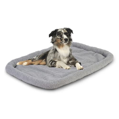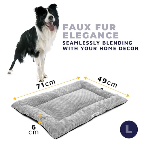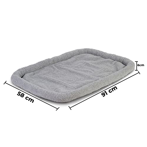 Dog Bed - Large Washable Dog Crate Mattress | Comfortable Dog Cushion | Warm Dog Mat with Anti-Slip Bottom | Collapsible Dog Crate Bed | Puppy Mat Pad Blanket Dog Cats Bedding in Grey (91x58cm)