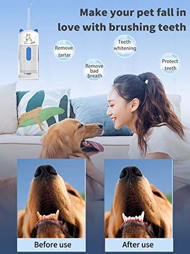 ?Keep Pet’s Teeth Clean & Healthy?Dental care is just as important for our dogs and cats, as it is for humans. The build-up and presence of plaque can lead to nasty dental diseases. Dog Electric dental irrigator helps you pet reduce tartar and plaque build-up, prevent periodontal disease and freshen their breath.