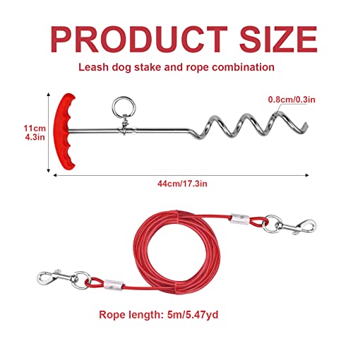 ?Easy to Use?Our Pet Tether Lead easy to install,Simply screw dog lead stake into/out the ground with ergonomic designed handle,Easy to clean.It is long enough for dogs freedom in outside so that you don't need to always look at your dog.Strong spring clips for quick tethering to dog collar and anchor points.