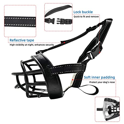 ROBUST & DURABLE - High quality natural rubber material made this muzzle tough & durable, strong weather-resistant nylon fabric strap comes with reflective stitches increased visibility to ensure safe dog walking at night, gives you peace of mind for safe socialization, safe handling during vet visits, grooming or dog travelling.