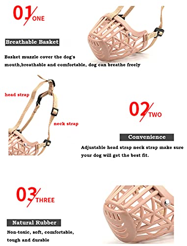 Tough and soft: The basket muzzle is made of flexible non-toxic rubber, which is very tough, durable and soft to the touch. The rounded edge design will not harm your dog.