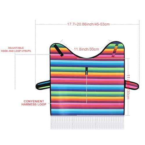 Mexican pet costume accessories: full of happy fiesta atmosphere, this Mexican pet serape poncho and Mexican sombrero costume is lovely, containing classic Mexican poncho sombrero with rainbow serape edge and band, suitable for Cinco De Mayo Mexican fiesta theme party decorations