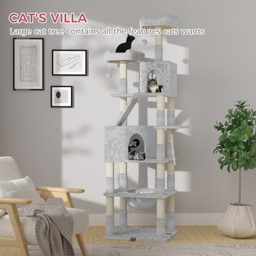 ?Numerous Scratching Post?: This Tall cat towers for indoor cats has a total of 15 cat claw posts and 1 cat scratching board, the posts are made of sturdy sisal twine and are all positioned at a height that is frequently used by cats. Your cat's scratching nature can be easily satisfied no matter which level they play on