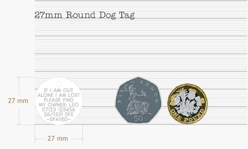 Durable 3mm thick two tone plastic Deeply engraved showing contrasting colour lettering Up to 6 lines of engraving on each side Size 27mm diameter approx.