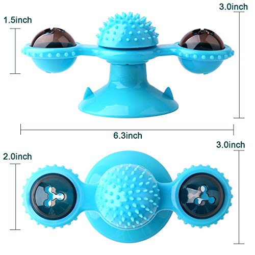 Exboard Windmill Cat Toys, Turntable Interactive Cat Toy with Suction Cup Brush for Cat Tooth Cleaning Scratching,Wall Mount Cat Spinner with Rotatable Toy ball (Blue)
