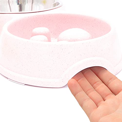 ???????????????? ????????????????????????: This is a complete set of two dog feeder bowls, stainless steel, and a slow anti-choke feeder bowl, combining two bowls together with an ingenious design. The design of these dog feeding bowls is convenient for serving multiple animals at once or giving out food and water at the same time. This suits all sizes of the puppy, cat, rabbit, and more.