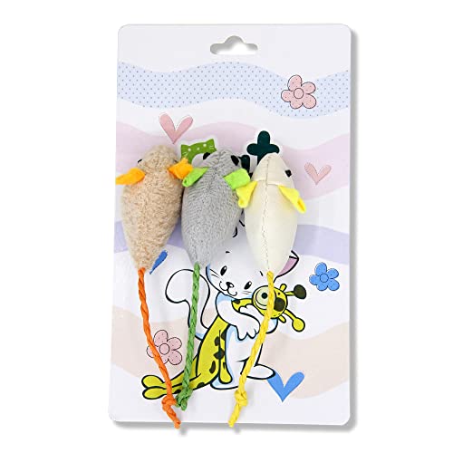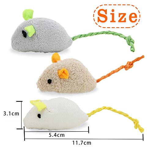 Package and buying with confidence -- There are 3 pcs different color cute mice toys for your cat. The size of cat toys is Approx. 5.5cm. If you have any questions about the product, please feel free to contact us, we will reply you within 24 hours.