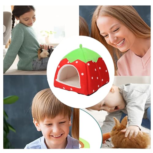 ?Suitable for Pets?The strawberry rabbit beds is suitable for small animals of similar size, such as guinea pigs, small rabbits, chinchillas, etc. Size details: size 24×24cm. The Bed will turn your pet's cage into a cozy home. Available to Wash by Hand or Machine.