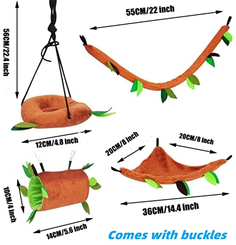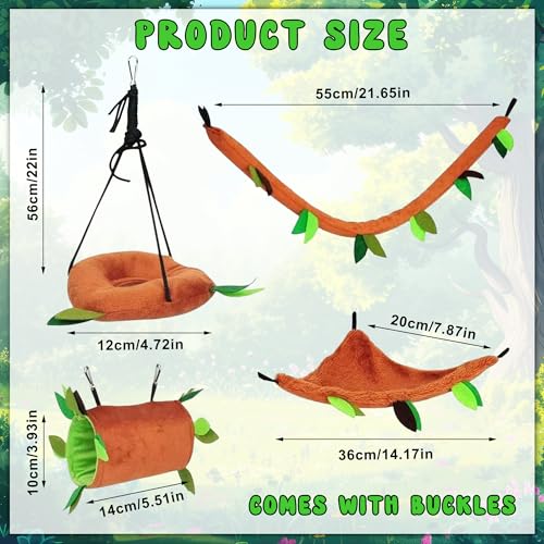 ? 5 Piece Forest Pattern Swing Toys, Create a primitive deep forest atmosphere, stumps, branch tunnels hanging in cages, it's designed like a stump with holes for your pets to get in and out,let small pets have fun by themselves.