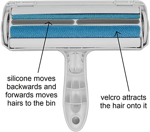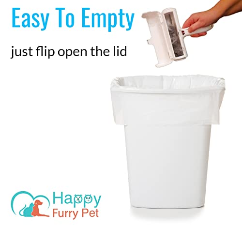 Happy Furry Pet Hair Remover Roller Brush - for Carpet, Sofa, Clothes, Car Seat - Remove Clingy Cat and Dog Hair - Superior Fur Buster Pet Hair Remover - Extras x2 - White Plastic (BLUE)