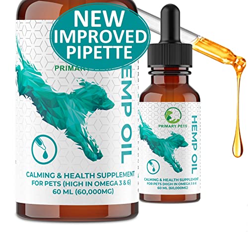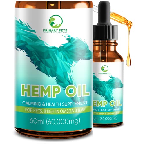 ??CALMING HEMP OIL FOR PETS. HIGH STRENGTH RICH IN NATURAL OMEGA 3 and OMEGA 6 along with Vitamin A and Vitamin E. Primary Pets Hemp Seed Oil for Dogs is Produced from the Sativa Plant which is Known for its Calming Benefits, Natural Antioxidants, Omega Oils and Vitamins; which makes it the ideal Dog Calmers for Thunderstorms and Fireworks. Furthermore, it Supports Pets Immunity, Anxiety, the Nervous System and Helps Soothe Joint & Muscle Pain.