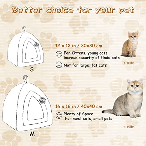 Made in super cozy materials, small, enclosed space to make your cats feel comfortable and warm. Classic tent-shaped cat house, very cute and timeless. Dimensions: 30 * 30 * 40.5 cm, larger entrance size: 15L x 20H cm. Suitable for less than 5.4kg of cats, kittens, pets. Cover: Outer printed flannel, filling: Arctic velvet. Long-last, beautiful colors and patterns, attractive to your pets. Excellent workmanship. Durable and will not become limp easily.
