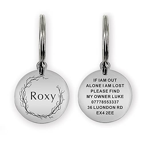 ID Tags for Dog Cat Personalised Dog Tag for Pets Puppy Kitty Engraved ID Tag in 2 Sizes and 4 Colours (Silver)