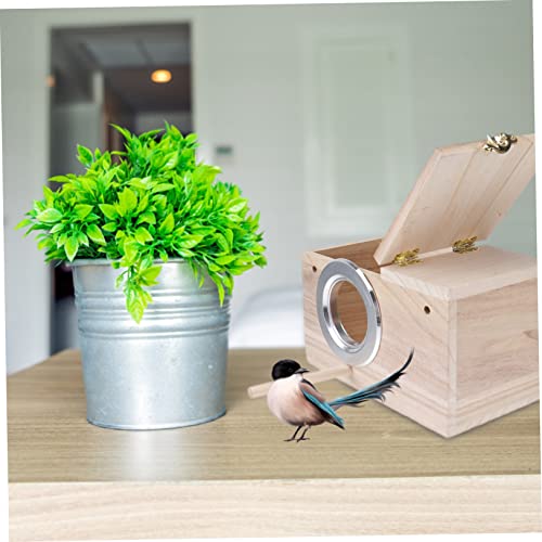 ifundom Wooden Bird Nesting Holder Small Parrot Breeding Box with Clear View Window for Bird Watching and Protection Durable Reinforced Panels Suitable for Songbirds Finches Budgies