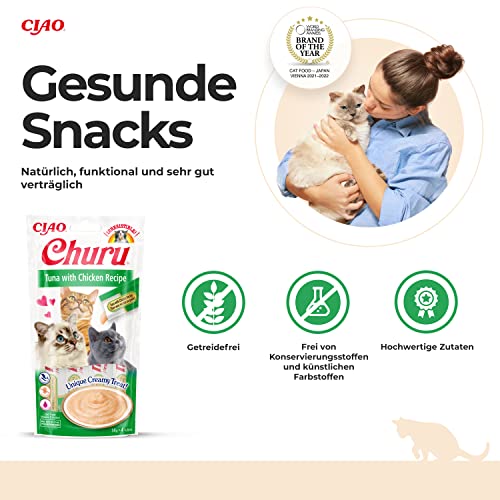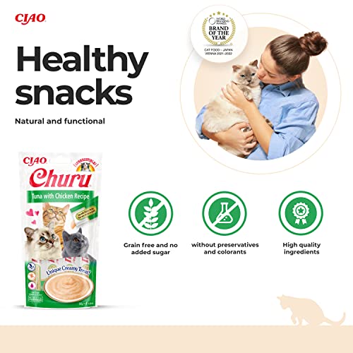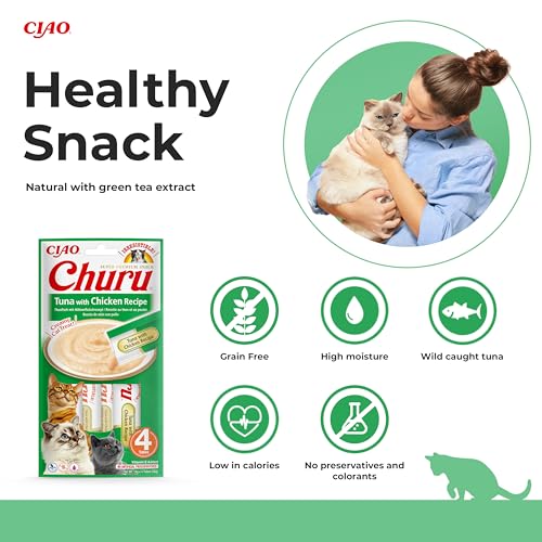 KEEP OUR FELINE HYDRATED WITHOUT ADDING CALORIES: Each delicious, creamy Churu tube contains 91% moisture and only 6 calories (a tenth of the calories of traditional dry cat treats), which makes it a healthy snack you can feel good about feeding