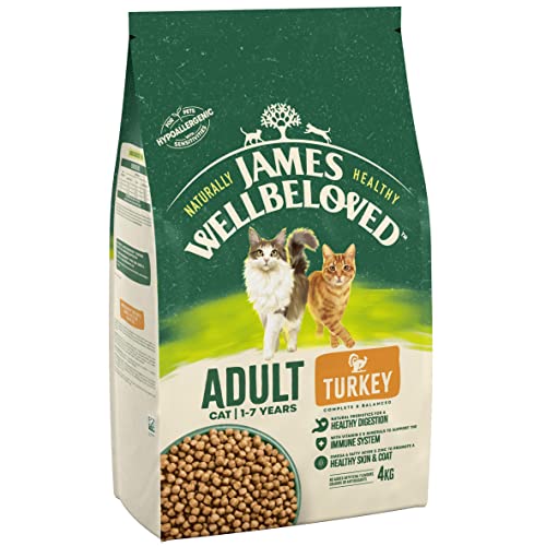 Items delivered: 1 x 4 kg bag of James Wellbeloved Complete Adult Dry Cat Food, hypoallergenic, one source of animal protein (turkey), no added artificial colours, flavours or preservatives