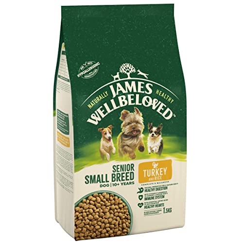 Items delivered: 1 x 1.5 kg bag of James Wellbeloved Complete Senior Dry Dog Food, hypoallergenic, selected protein source (turkey) and rice, no added artificial colours, flavours or preservatives