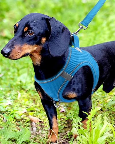 EASY ON and OFF - It takes seconds to take on and off the harness, especially suitable for dogs don't like harnesses to go over their heads. Just put their front feet into the hole, close the hook and loop fastener and snap the buckle, finished
