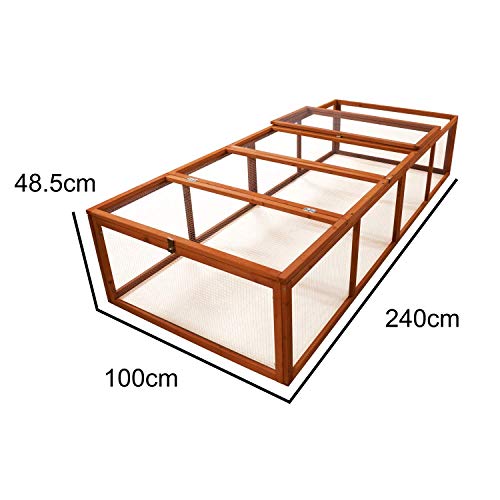 Large run area, enough space to let your animal run around and play Secure opening lid that can be opened both ends to make reaching your pet easy The enclosure consists of a strong wooden frame, lined with a metal screen mesh. This helps to keep your pet secure and most importantly safe from predators. Ideal for all small animals like rabbits, guinea pigs, tortoises, hedgehogs, ferrets and many more. Overall Dimensions: 100 x 240 x 48.5cm (Width x Length x Height)