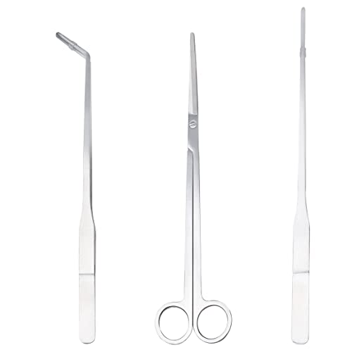 kuou Aquarium Kit Tool Accessories, 3 in 1 Stainless Steel Aquarium Tank Aquatic Plant Tweezers Scissors Tool Set for Fish Tank Plants