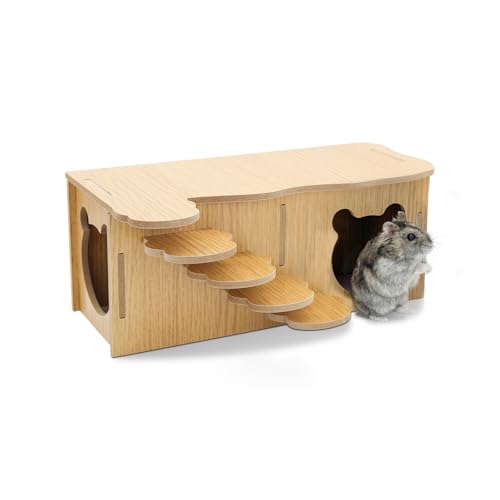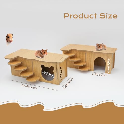 Hamster Landscaping: This hamster habitat is very cute and has two rooms, which can be used as a sleeping and hiding place. It comes with a small hamster ladder that allows the hamster to easily climb to the top viewing platform to look out