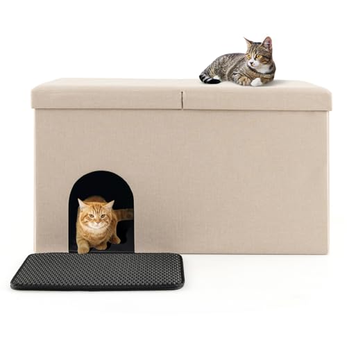 Comfy & Sturdy Shoe Bench: The non-woven fabric used in the construction of the cat hidden toilet is breathable and skin-friendly. High density sponge filling will ensure maximum comfort when used as a shoe bench. Besides, the selected MDF board improves the sturdiness to hold up to 200kg.
