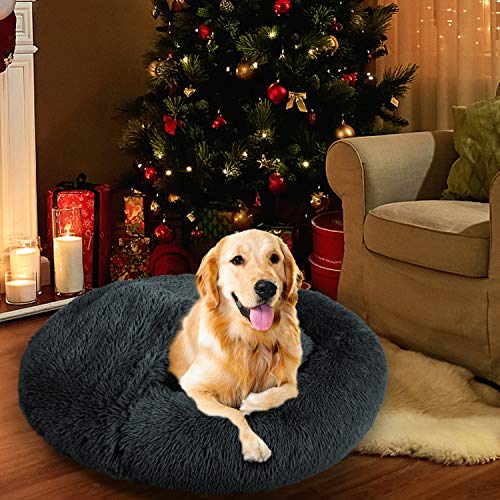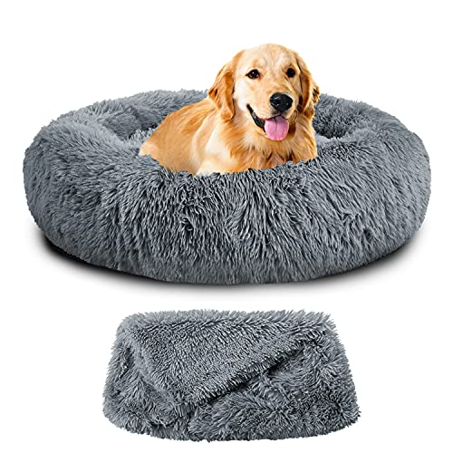 ?Cozy, Luxurious Sleep?: Calming dog bed with donut shape design, satisfies the nesting instinct of dogs who love to curl up. The large dog bed donut cuddler and plush blanket are reminiscent of their mother's fur, providing a calming, anxiety-relieving space which offering joint and muscle pain relief. Help pets relax and sleep soundly.