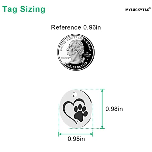 ?Material & Size? Made of stainless steel with a high polished surface, it is rust resistant and features the latest engraving technology with double-sided engraving for clarity, permanence and durability, ideal for long-term tagging, it will not discolor on your pet's fur. Size (diameter ?): 0.98 inches, weight: 0.24 ounces.