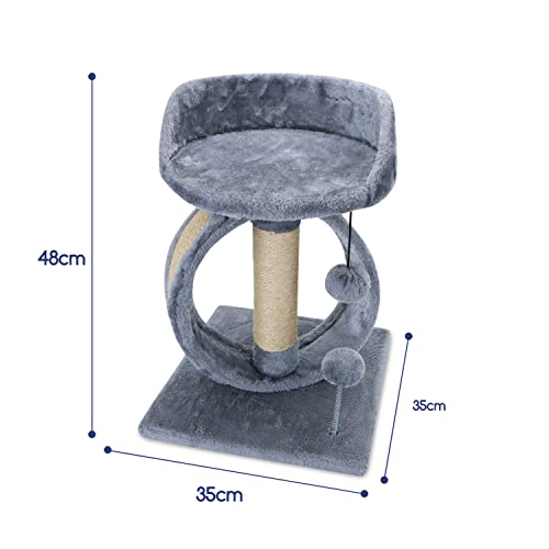 ?????Product Dimensions?(35*35*48)cm / (14*14*19.2)'' (L*W*H). This 48cm tall cat scratching post is the ideal height for large adult cat to scratch fully and tone muscles. It is a great unit for scratching, climbing, resting, sleeping and exercising.
