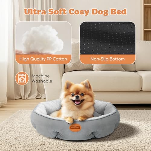 Thick Raised Rim. Nobleza washable small dog bed is filled with high quality pp cotton with good resilience, thick raised rim provide a good comfortable support for pet's neck and head. The calming cat beds make your pet feel soft and warm in winter and have a better sleep.