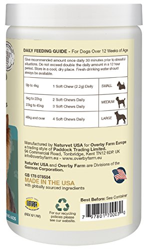 ? PROMOTE REST and RELAXATION - One of the natural ingredients in our soft chews is L-Tryptophan, which helps your dog keep calm during thunderstorms, fireworks or when going through separation anxiety.